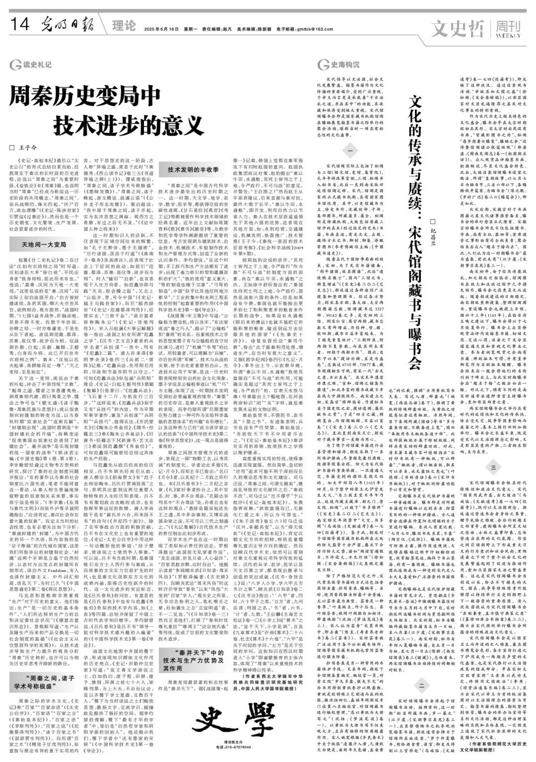其中,我院王子今教授《周秦历史变局中技术进步的意义》一文入选《光明日报》理论版2025年热门文章。