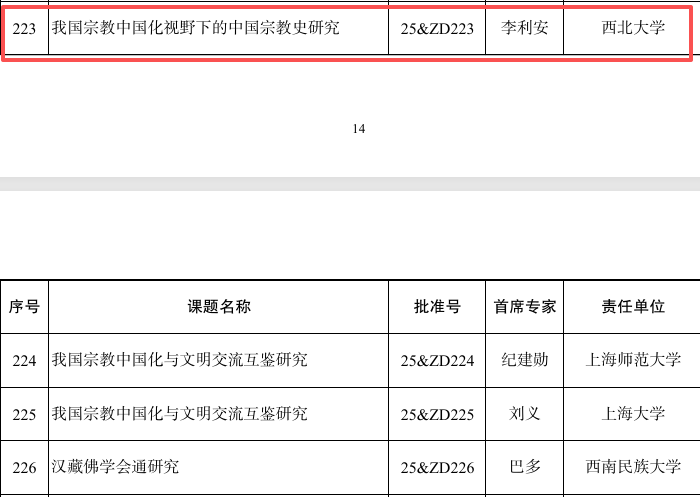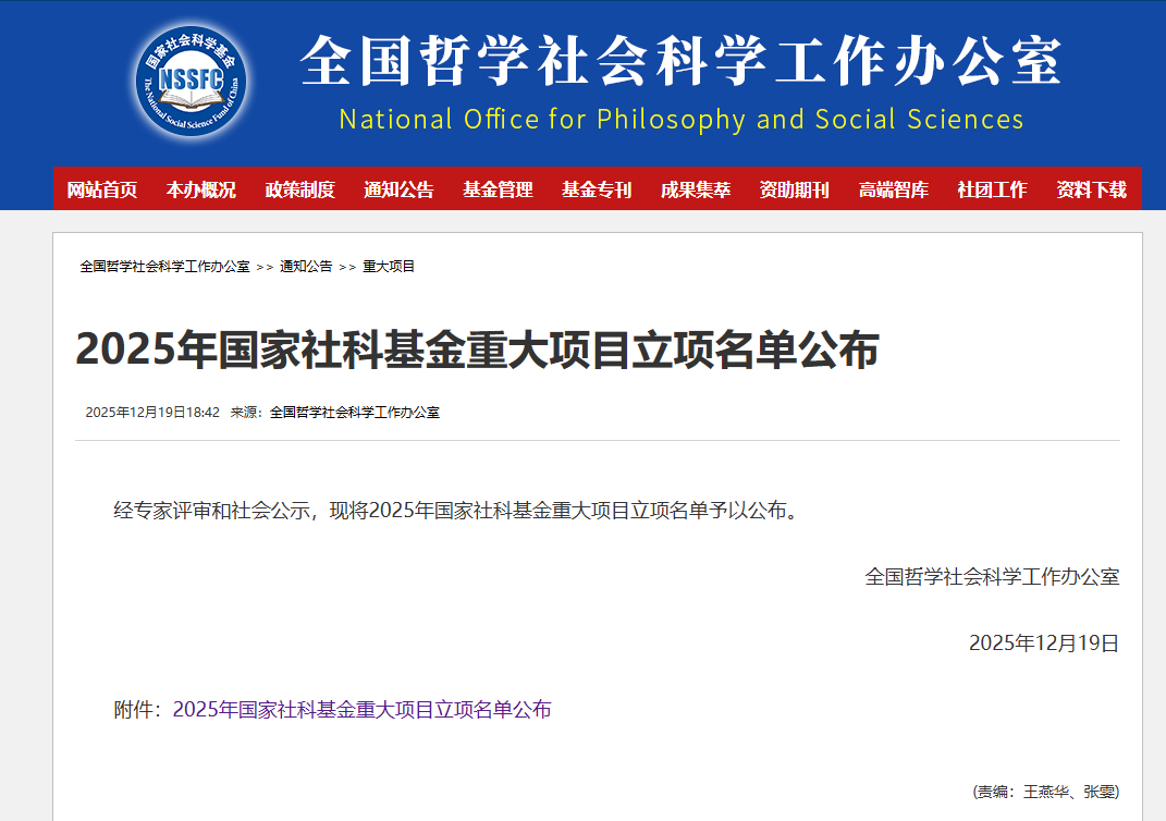 近日,全国哲学社会科学工作办公室发布了2025年国家社科基金重大项目立项名单。我院李利安教授担任首席专家申报的“我国宗教中国化视野下的中国宗教史研究”获准立项。